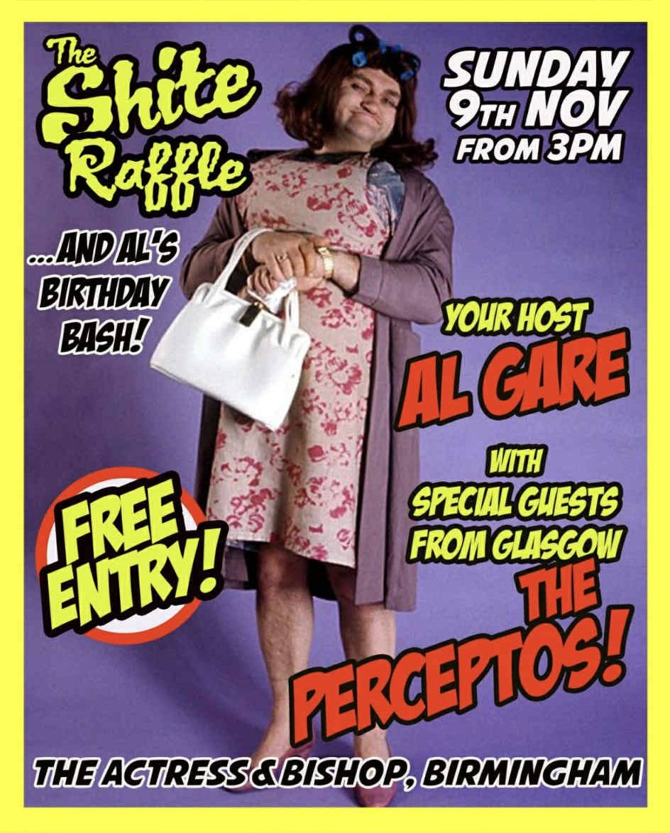 Alright bab, it’s that time again — The Shite Raffle is back, and it’s gonna be a proper laugh. Hosted by birthday boy Al Gare, who’ll be celebrating in style (and probably regretting it by Monday).